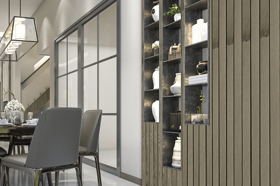 Thiết kế vách ngăn phòng khách sử dụng tấm DURAflex